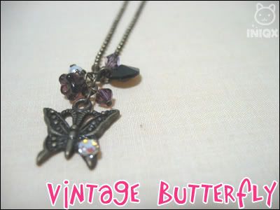 ![]() My Muji buys! I left 2 bottles of milk-tea in the office. I'm totally addicted to it. <3 ![]() A really lovely vintage-looking butterfly necklace from a local seller, Janice. ![]() The key version. |