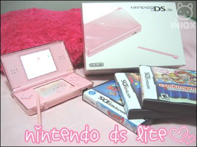 Nintendo DS Lite in Noble Pink, along with 3 games. I'm so in love with this sweet thing, I wanna hug it to bed! <3